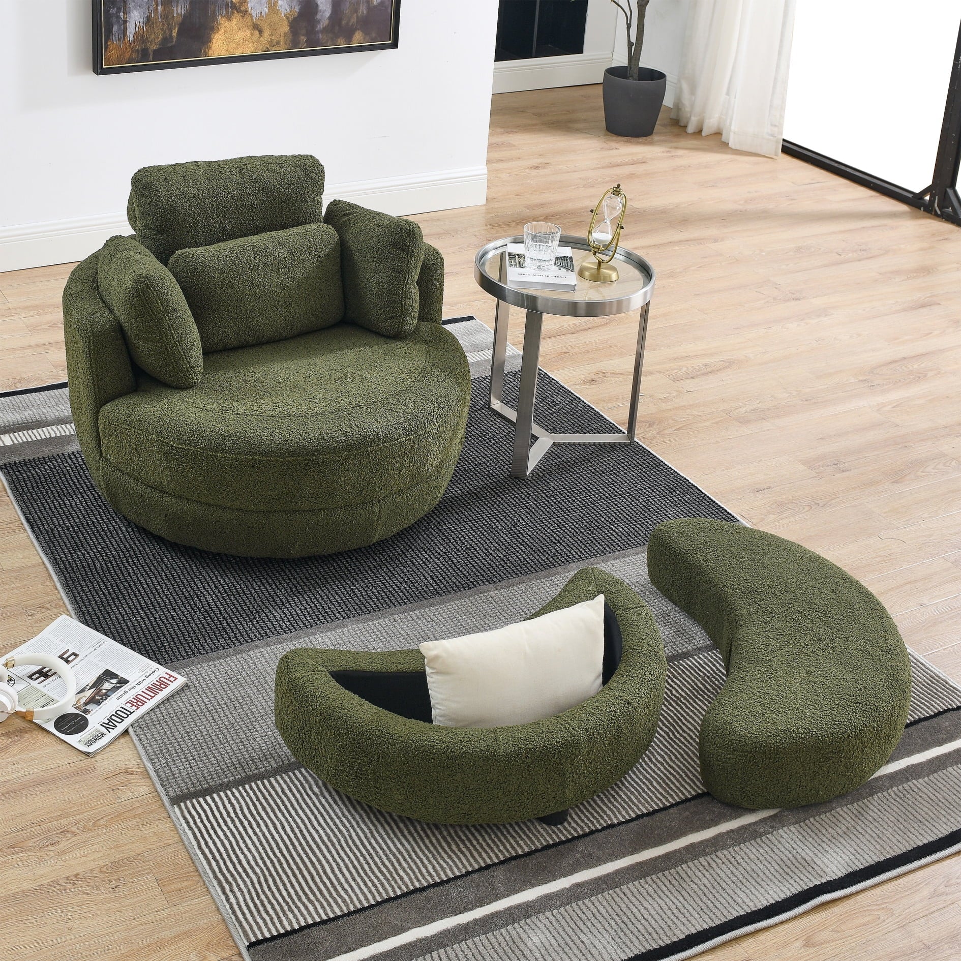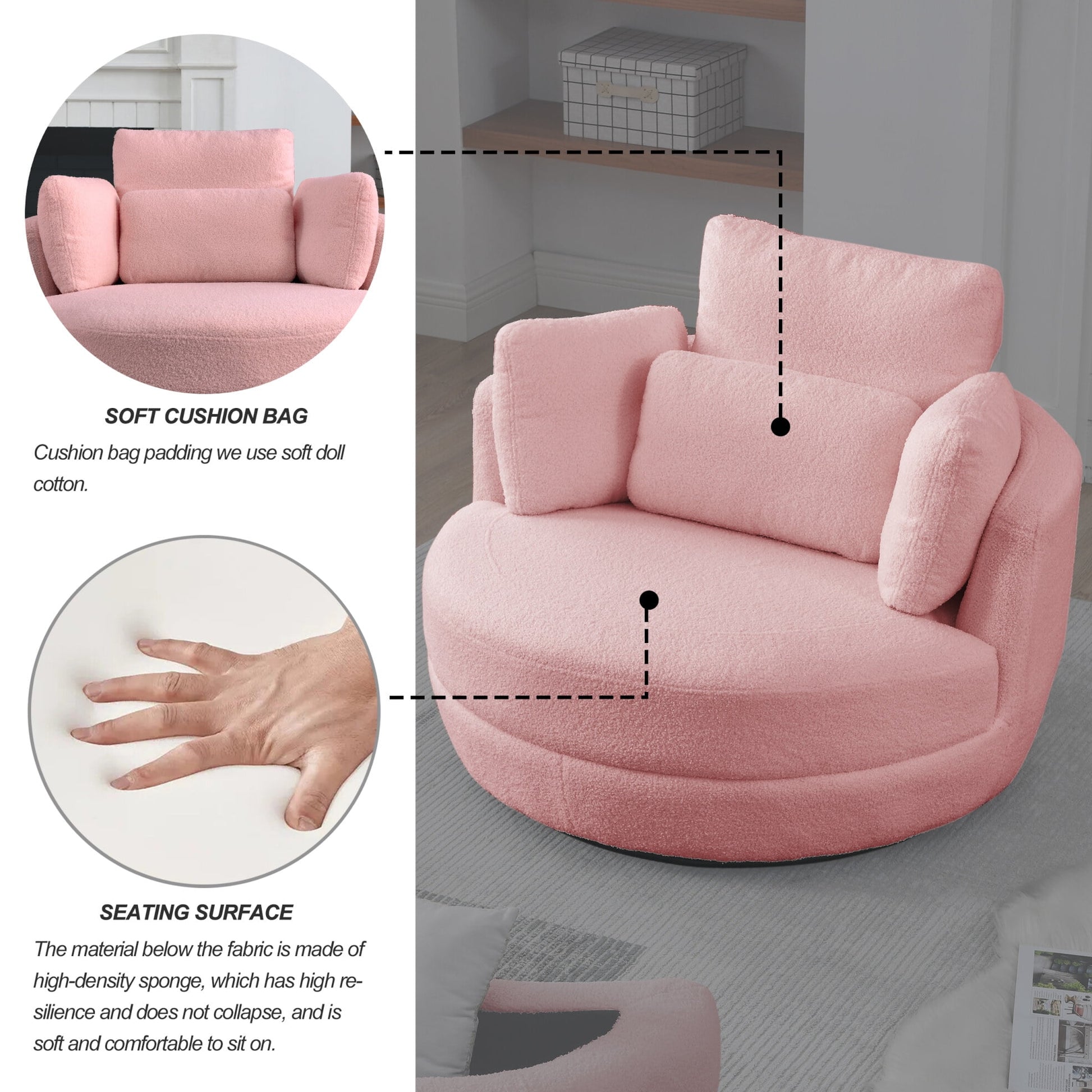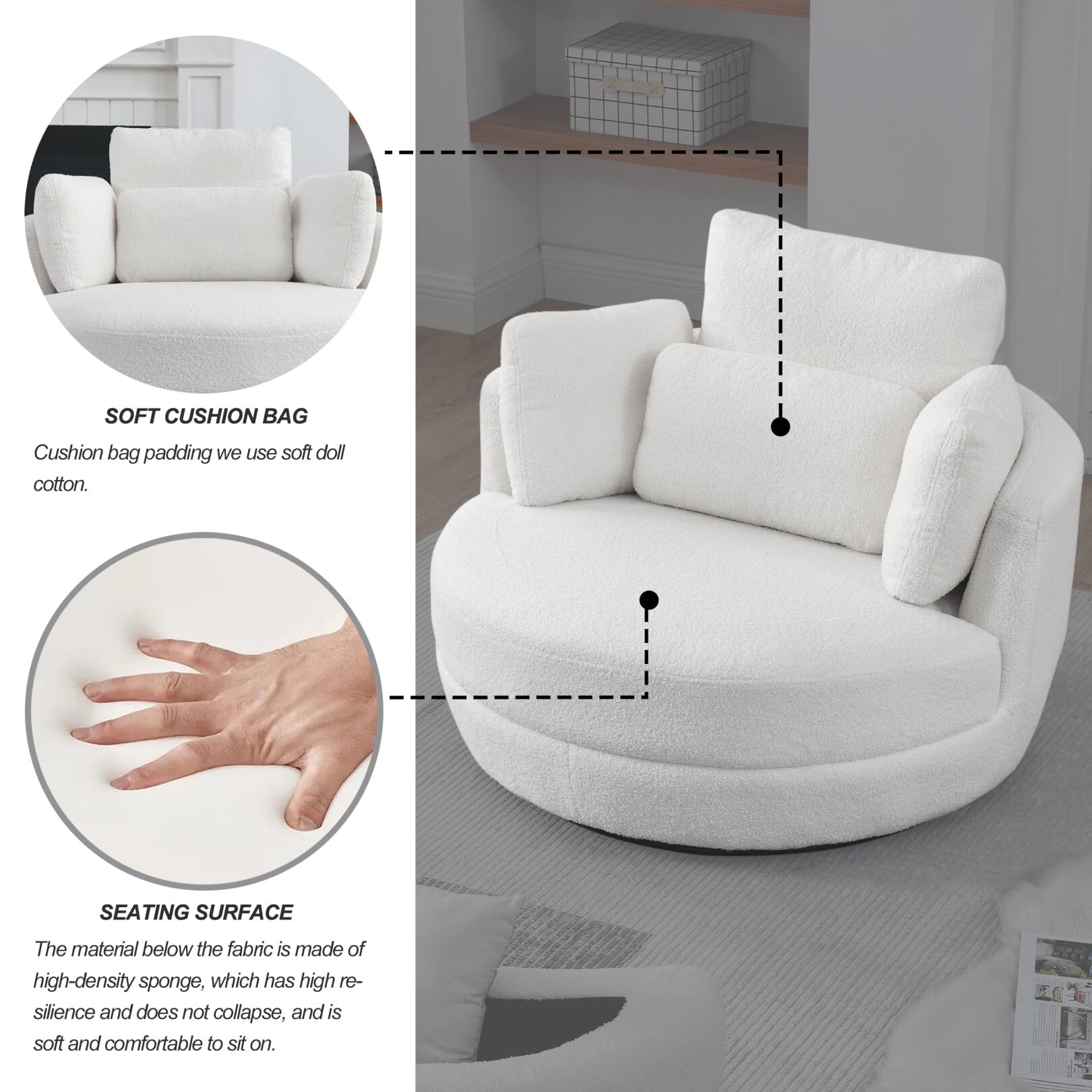 39inW Oversized Swivel Chair with Storage Ottoman and 4 Pillows, Swivel Barrel Chair for Living Room,Round Teddy Fabric Modern Accent Round Loveseat, Armchair Sofa Lounger for Bedroom,Grey Teddy