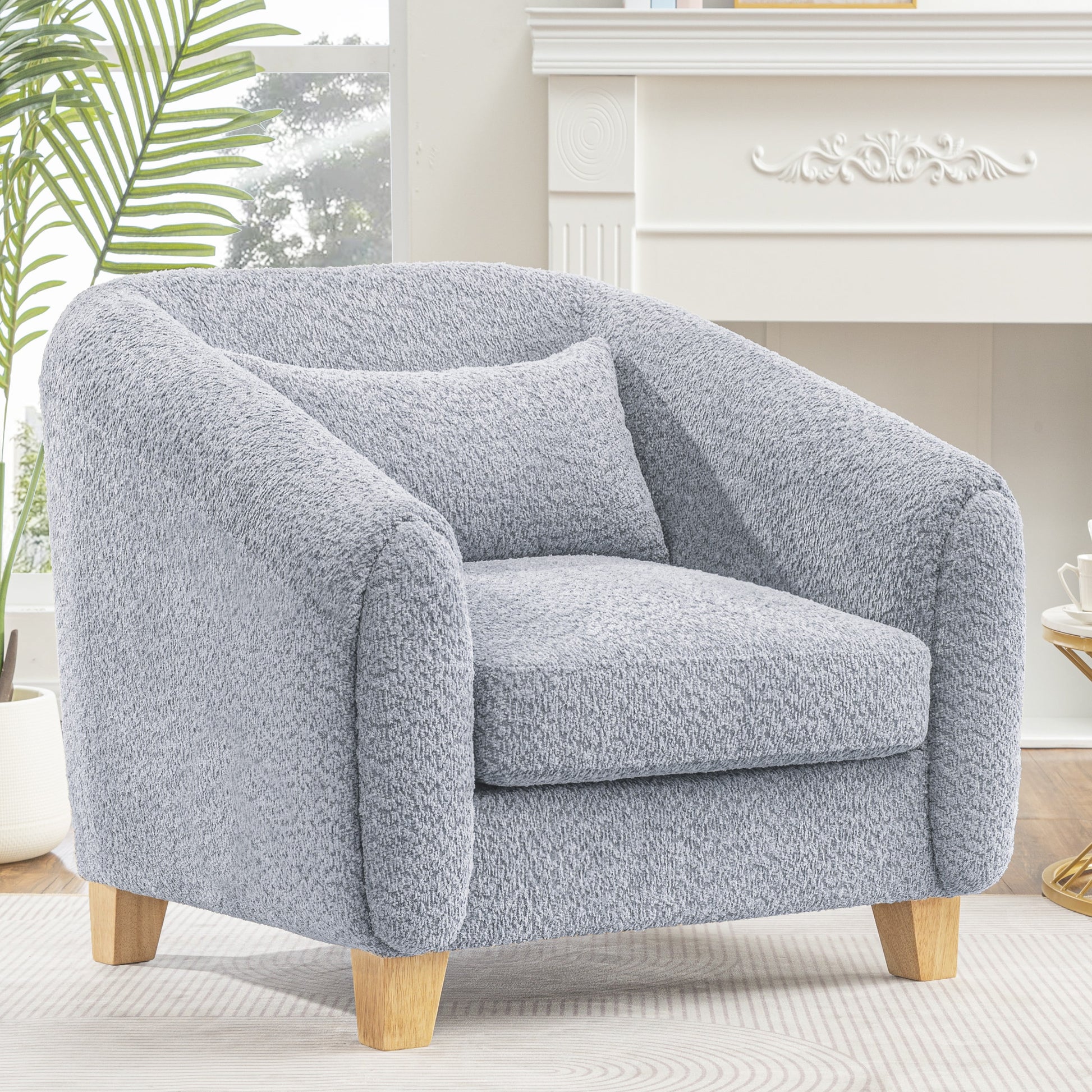 Accent Chair,Fabric Upholstered Comfy Reading Armchair for Living Room,Bedroom Single Seat Sofa Chair with Wood Base,Light Grey