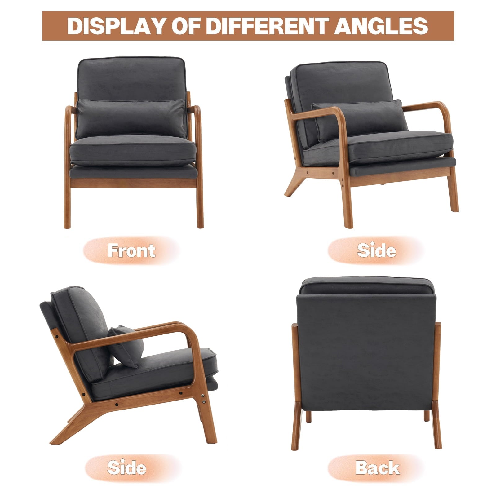 - MID CENTURY MODERN CHAIR: The accent chair features line fabric, a solid oak wood frame, and an ergonomically design backrest. Seat and back cushions are upholstered with various color of linen fabric, there are Bronzing Cloth and teddy fluff, three materials in all. A nice combination with an oak wood frame. You could choose the most suitable one, The chair integrates well with different home decorations