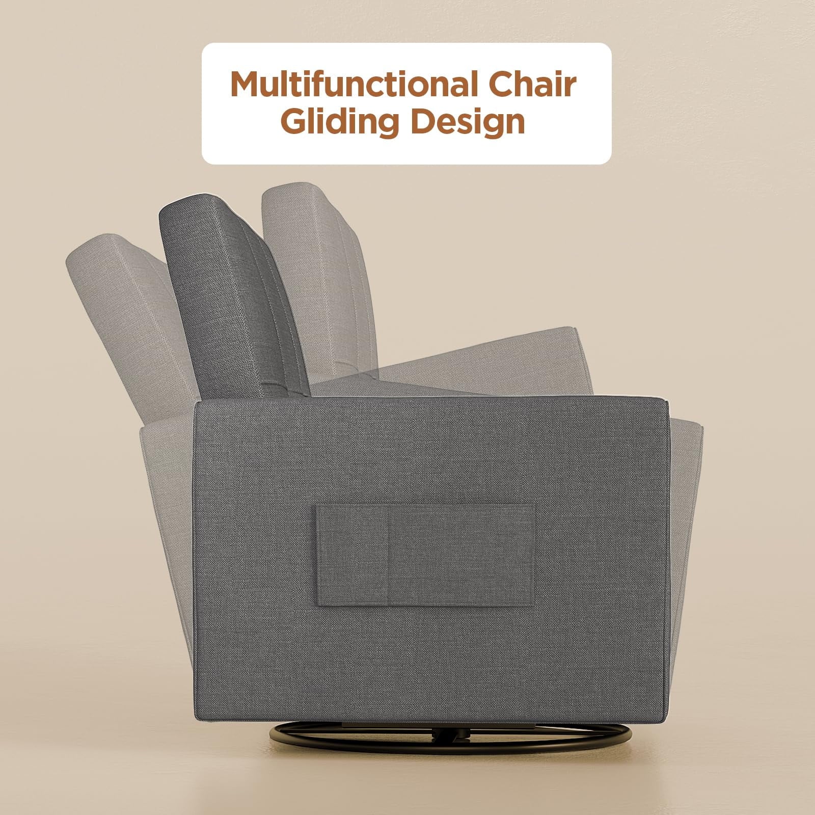 Immerse yourself in the enchantment of the 360-degree gliding recliner chair nursery!?? This exceptional chair features a complete 360¡ã swivel function. The seamless gliding combined with the swivel feature guarantees a superior relaxation experience for your entire body, allowing you to unwind and destress like never before.The luxurious glide living room chair is expertly crafted with high-quality linen fabric that is not only breathable and soft on the skin, but also designed to provide maximum comfort and durability. The innovative design of the backrest and seat guarantees long-lasting resilience and shape retention, making it the perfect choice for extended relaxation and use.??