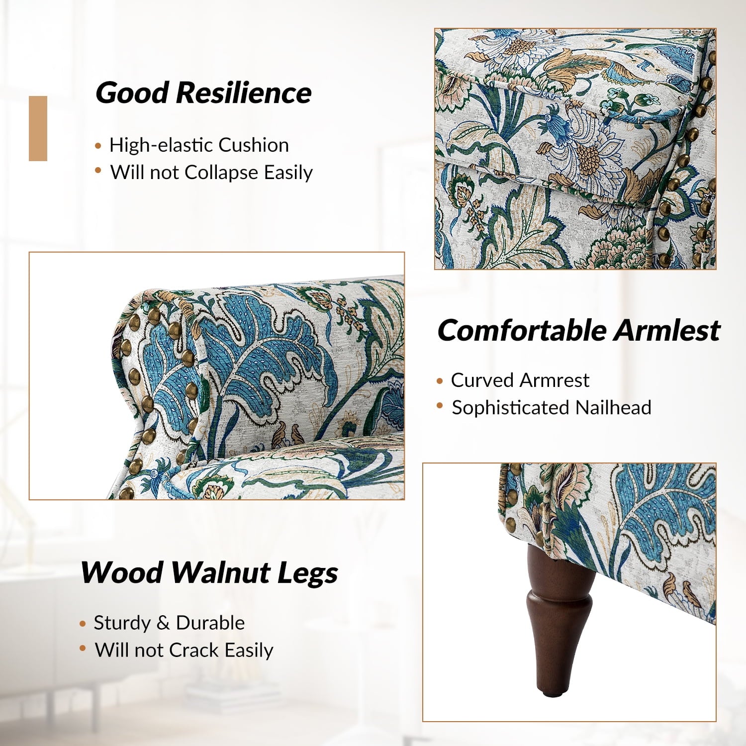 - With beautiful floral patterns and wingback design, this chair showcases a charming appearance, while wooden legs and retro rivet trim create a sense of retro timeless style to your home decor. You can put this chair in your living room, bedroom or office.