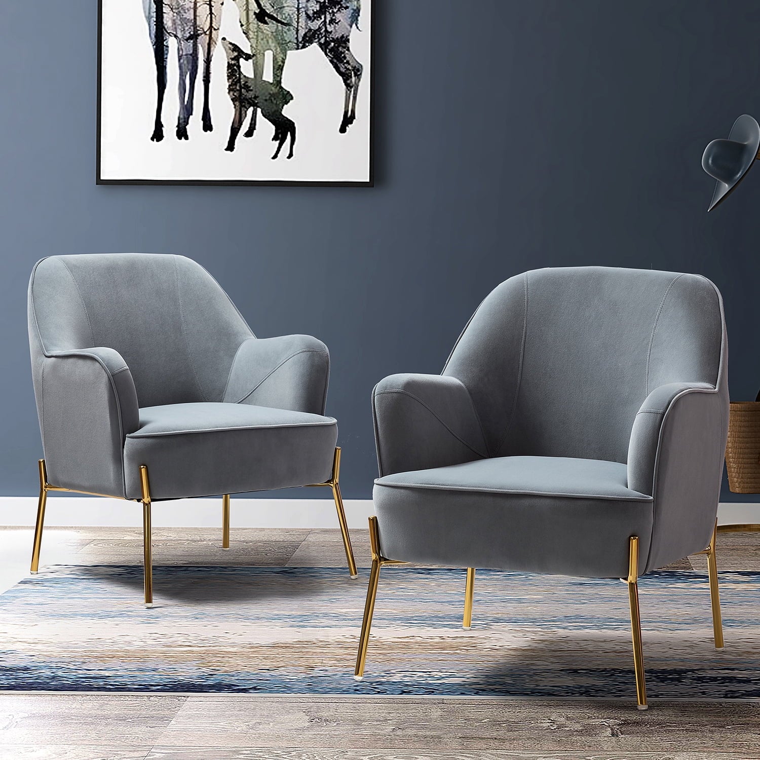 Velvet Upholstered Accent Chairs Set of 2 Metal Legs Curved Backrest Armchairs Bedroom Adult Grey