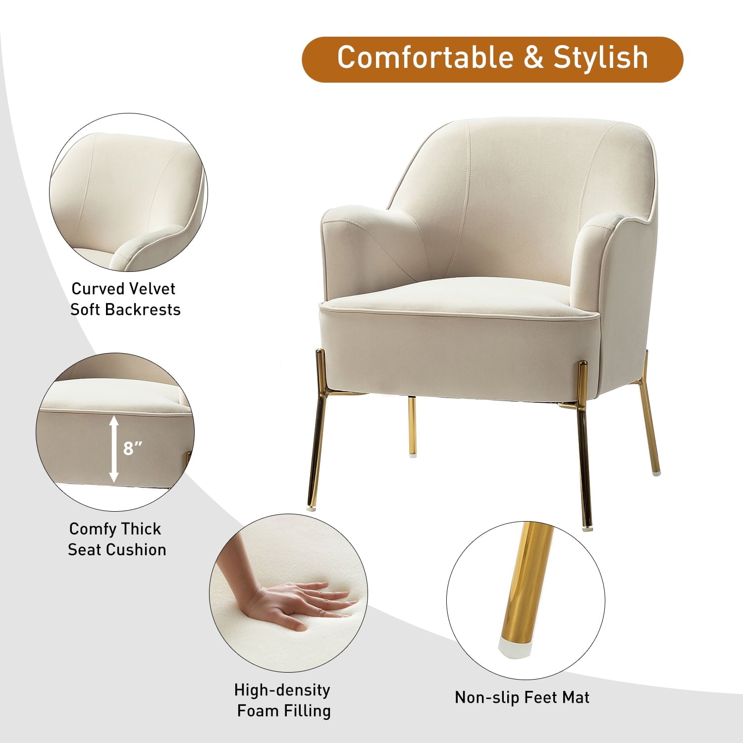 Velvet Upholstered Accent Chairs Set of 2 Metal Legs Curved Backrest Armchairs Bedroom Adult Tan