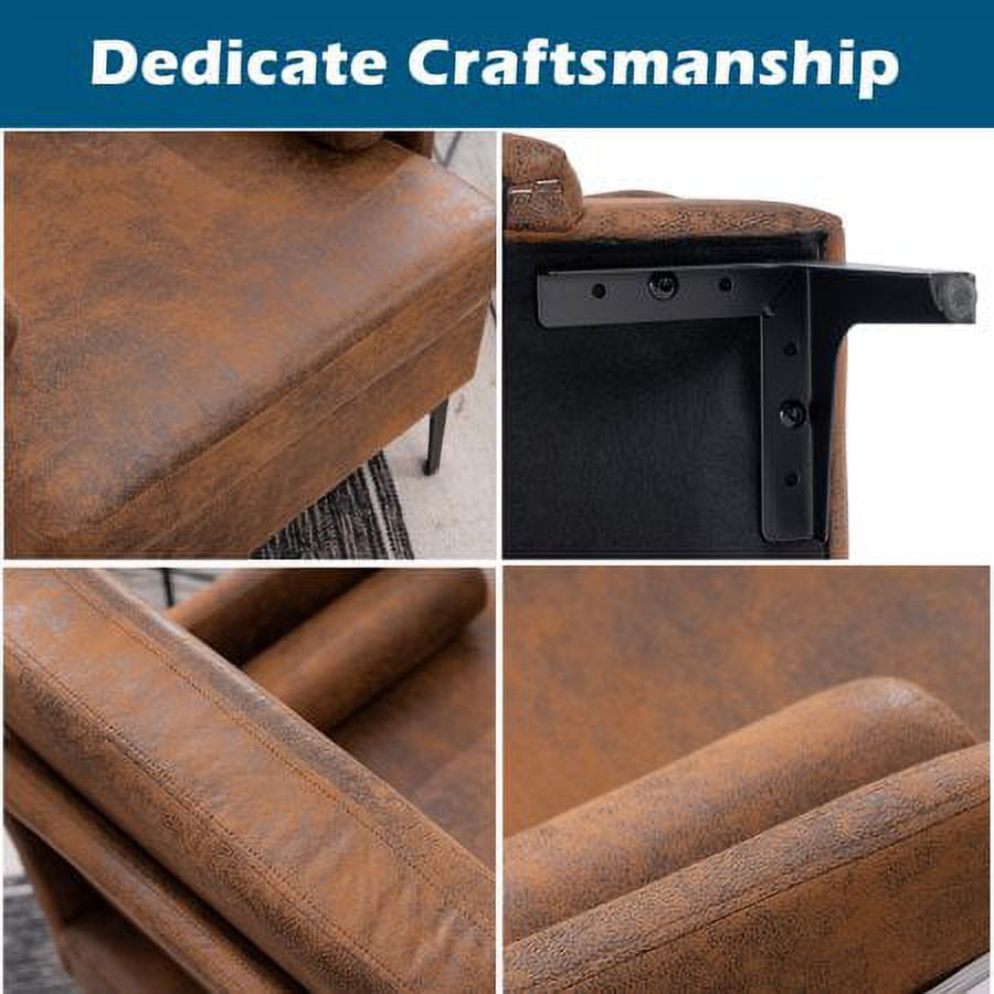 VINGLI Extra Wide Deep Accent Chair, Rustic Mid Century Chair Reading Chair Sofa Chair with Side Pocket for Living Room/Bedroom