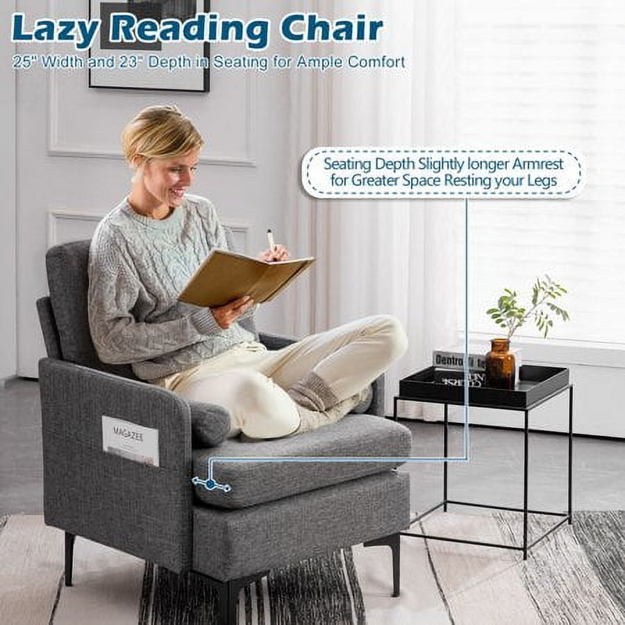 VINGLI Set of 2 Modern Wide Arm Lounge Chairs, Grey Mid Century with Side Pocket