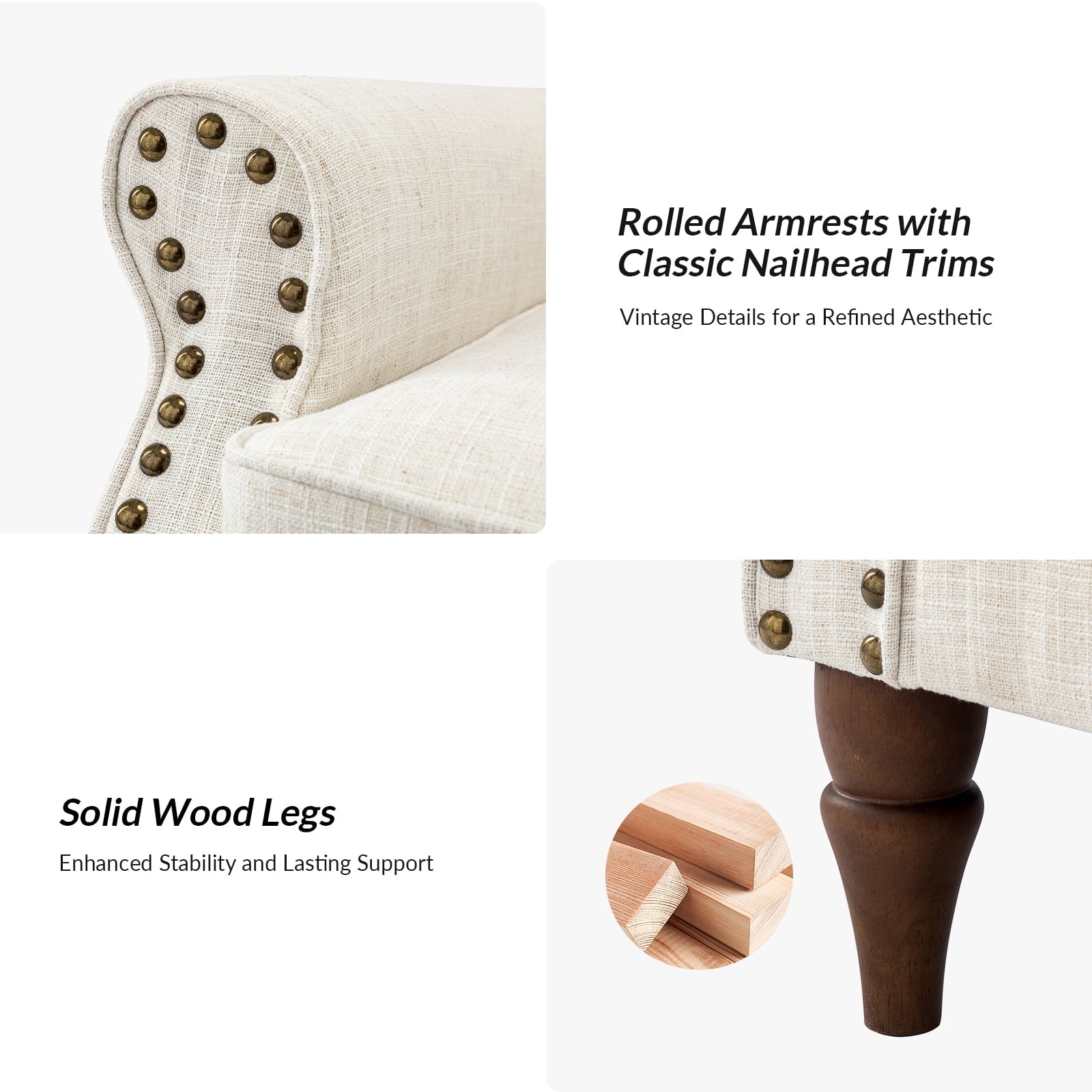 Wingback Accent Chairs Wood Legs Set of 2 Upholstered Sofa Armchairs Fabric Nailhead Trim Home Living Room Bedroom Ivory