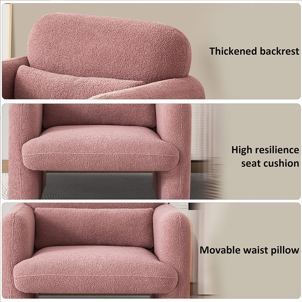 Youdao Modern Accent Chair, Faux Fur Club Chair, Furry Sherpa Elegant and Cozy, Soft Padded Armchair, Suitable for Living Room Bedroom Reception Room Office, Pink